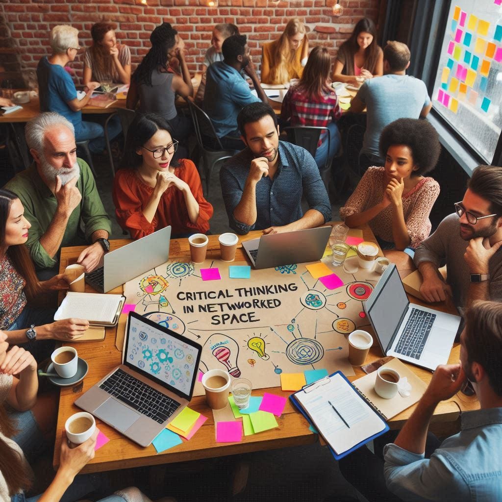 Critical thinking in digital spaces involves questioning the source and intent of information, cross-referencing with reliable sources, and recognizing emotional manipulation in content. It also requires understanding the role of algorithms in curating online experiences and assessing the potential biases and limitations of AI-generated content.